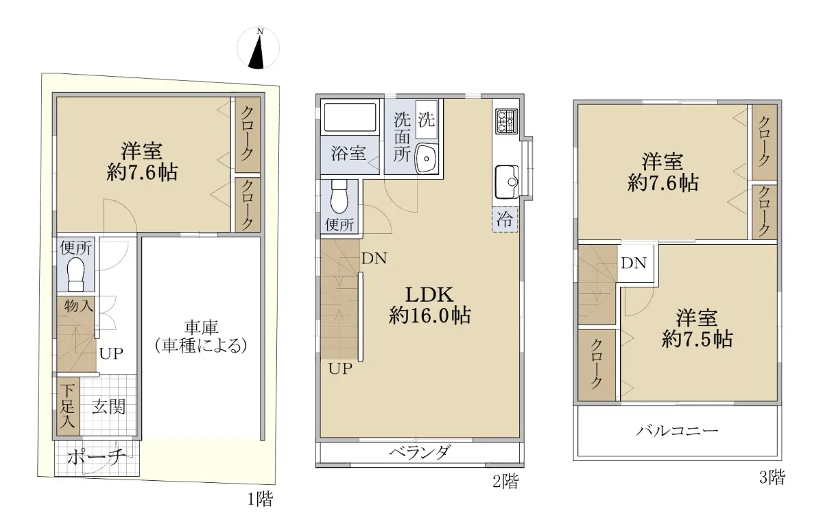 〇建物面積:1階:22.77u 2階:35.19u 3階:31.05u