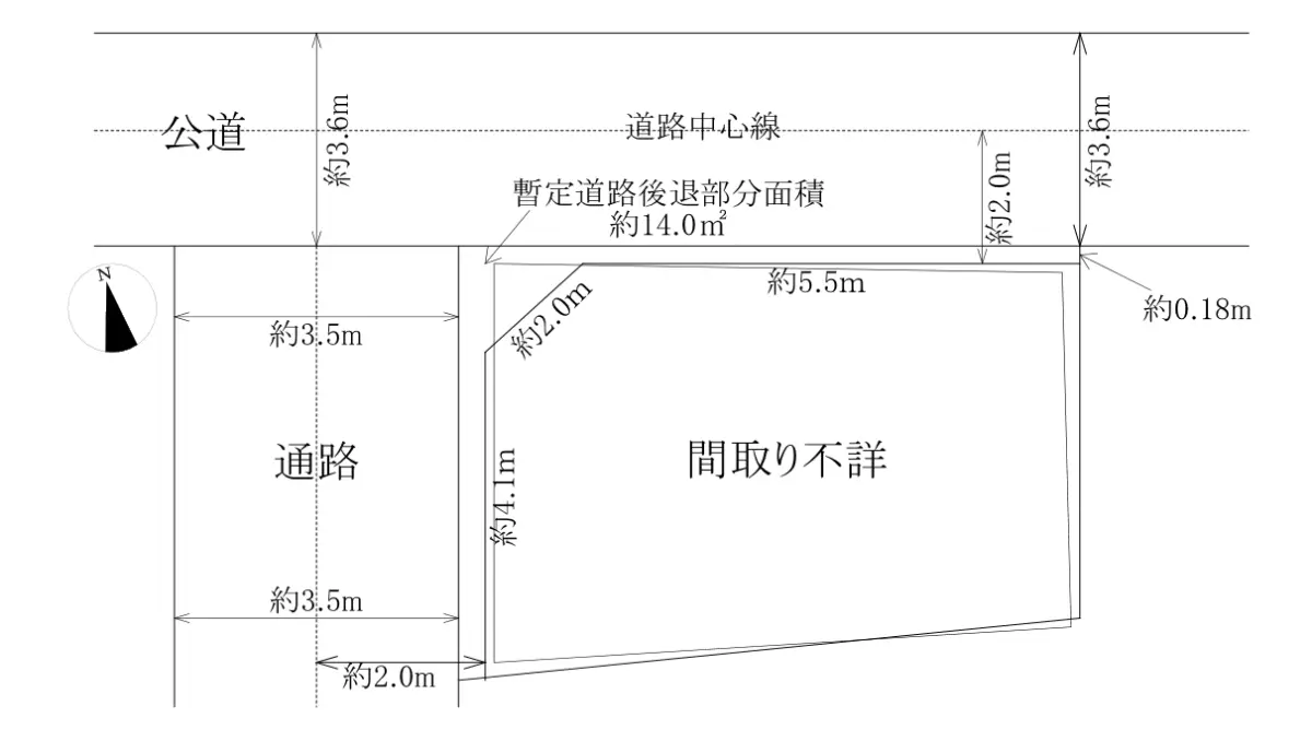 | 接道状況 | 一方道路・北3.6m(公道)接面7.6m |