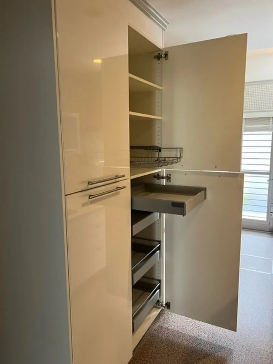キッチンスペース拡張の上キッチンセット交換、収納戸棚設置