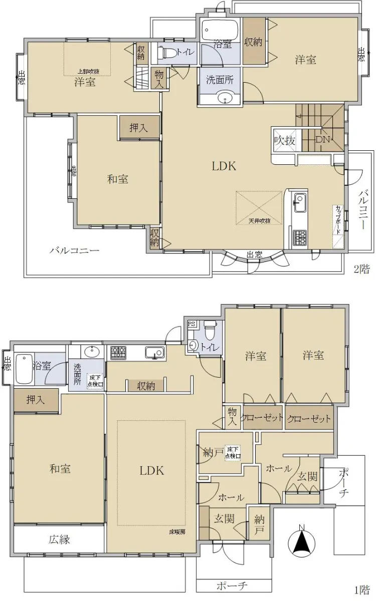■間取り:1階:3LDK+納戸、2階:3LDK