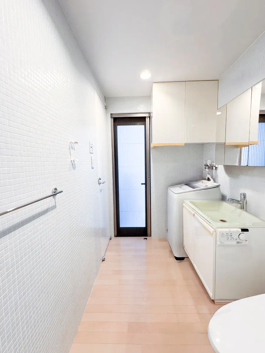 ■1階には浴室換気乾燥機付スケルトンバス、洗面台(強化ガラス仕様)、トイレ、洗濯設備あり