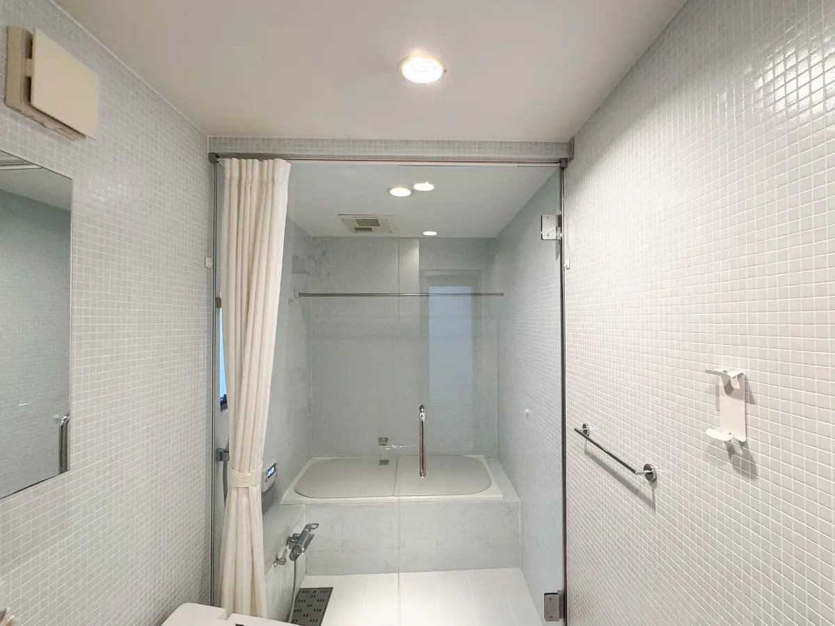 ■キッチン間仕切りや3階洋室扉、浴室等に強化ガラスを取り入れております。