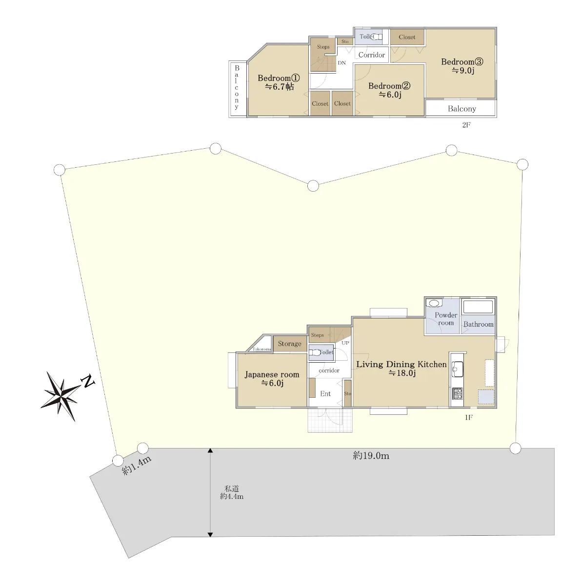 接道状況 | 一方道路・東4.4m(私道)接面20.4m |