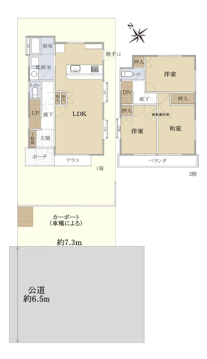 | 接道状況 | 一方道路・南西6.5m(公道)接面7.3m |