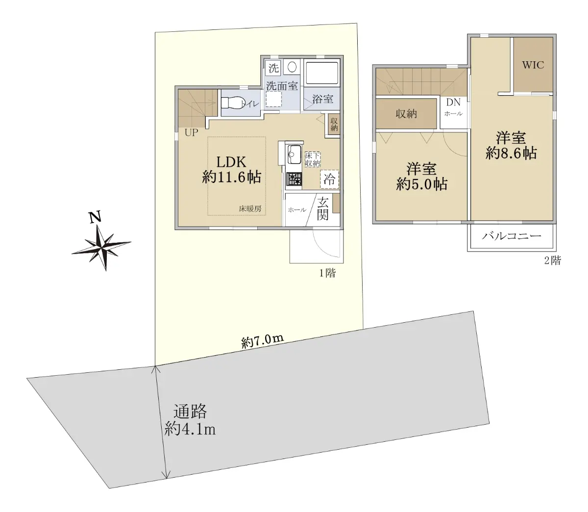 | 土地面積 | 76.46m2(約23.12坪)※公簿/セットバック済み/他に私道負担:14.00m2あり |