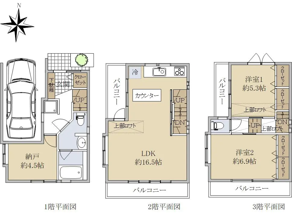 ◇ 駅徒歩7分 公道約7.3m 駐車場付き3階建 ◇