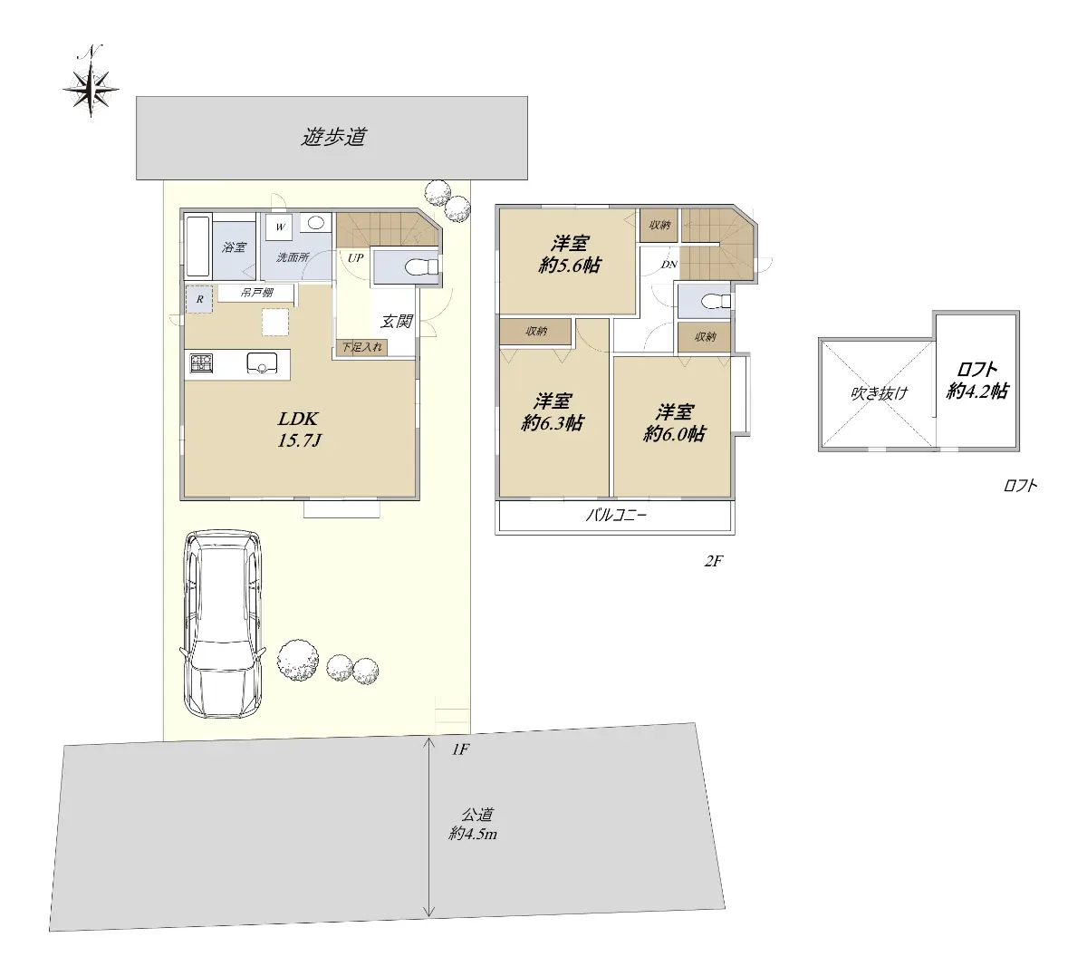 | 接道状況 | 一方道路・南4.5m(公道)接面7.3m |