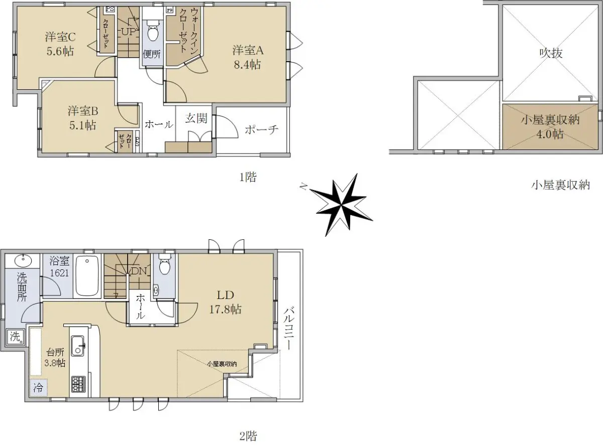 各居室に収納、小屋裏収納もございます。