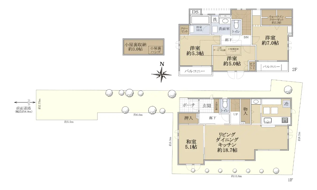 | 接道状況 | 一方道路・西6m(公道)接面2.7m |