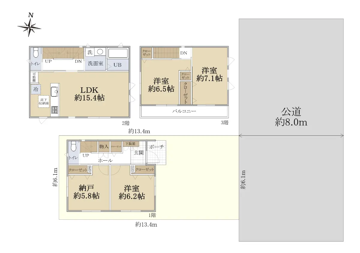 | 接道状況 | 一方道路・東8m(公道)接面6.1m |