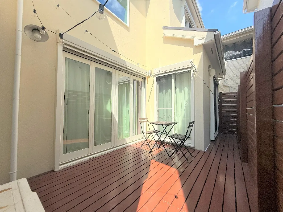 中庭にウッドデッキがあり、開放的な空間で周囲を気にせずゆったりとお過ごしいただけます。