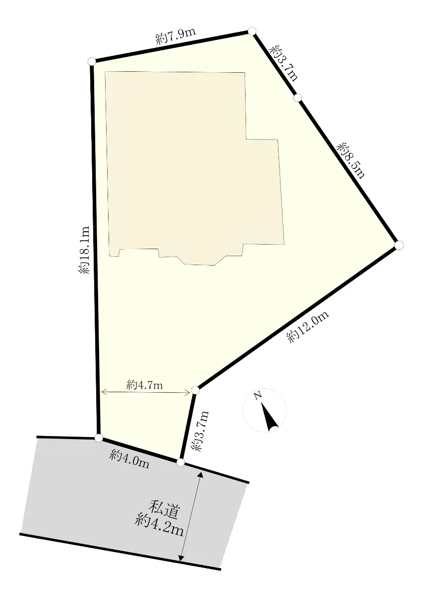 | 接道状況 | 一方道路・南西4.2m(私道)接面4m |