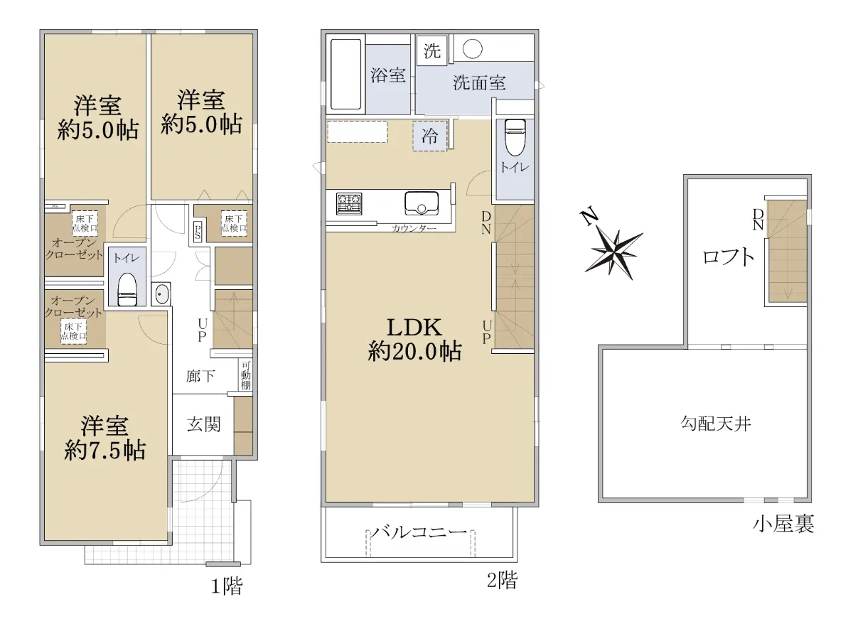 固定階段のロフトは季節物の収納等に便利にお使いいただけます。