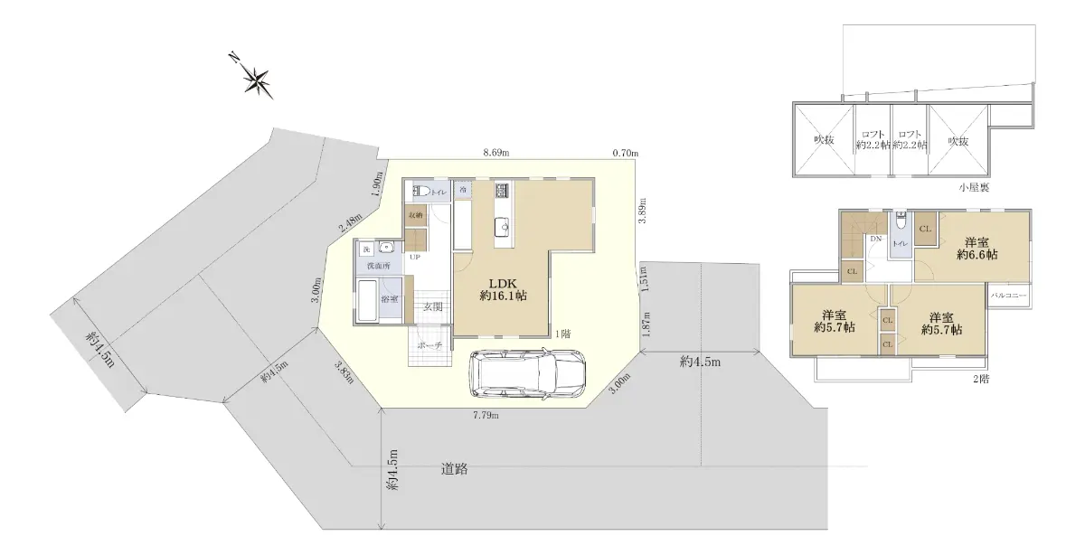 ◆間取り:3LDK+2階部分にロフト(約2.2帖)×2付き