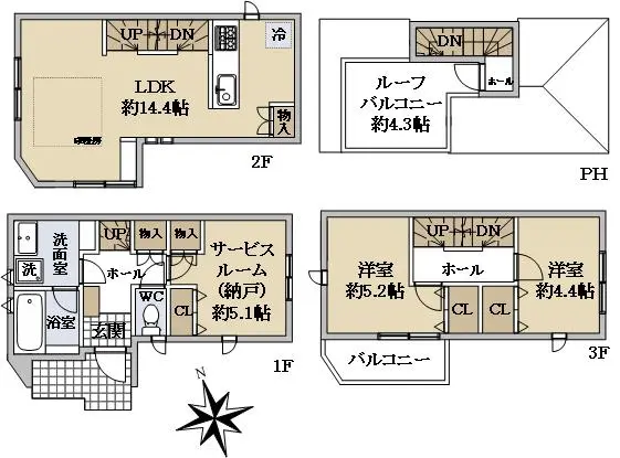 | 間取り | 2SLDK ※Sはサービスルーム(納戸) |