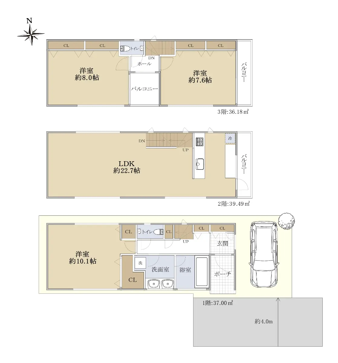 ・カースペース1台分(車種による)