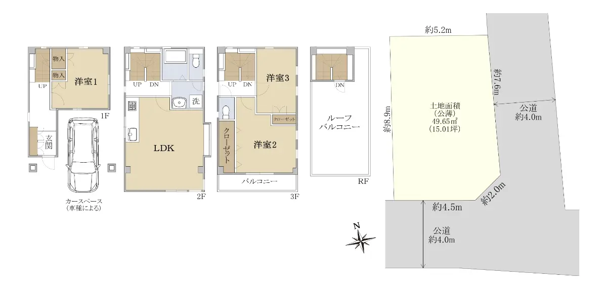 | 土地面積 | 49.65m2(約15.01坪)※公簿/セットバック済み/他に私道負担:2.64m2あり |