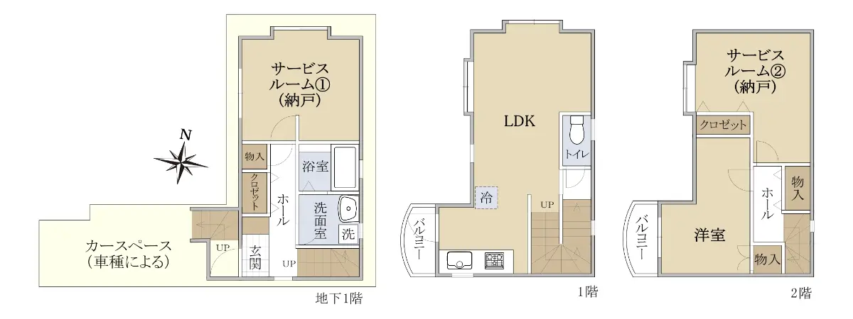 ・1LDK+2S ※S=サービスルーム(納戸)