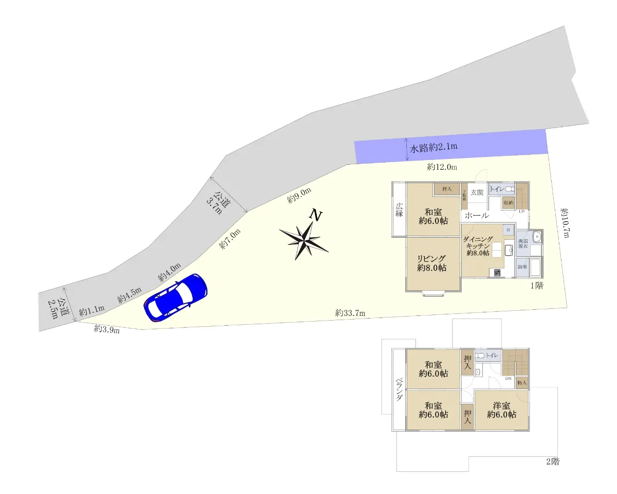 | 接道状況 | 一方道路・北西2.5m(公道)接面16.6m |
