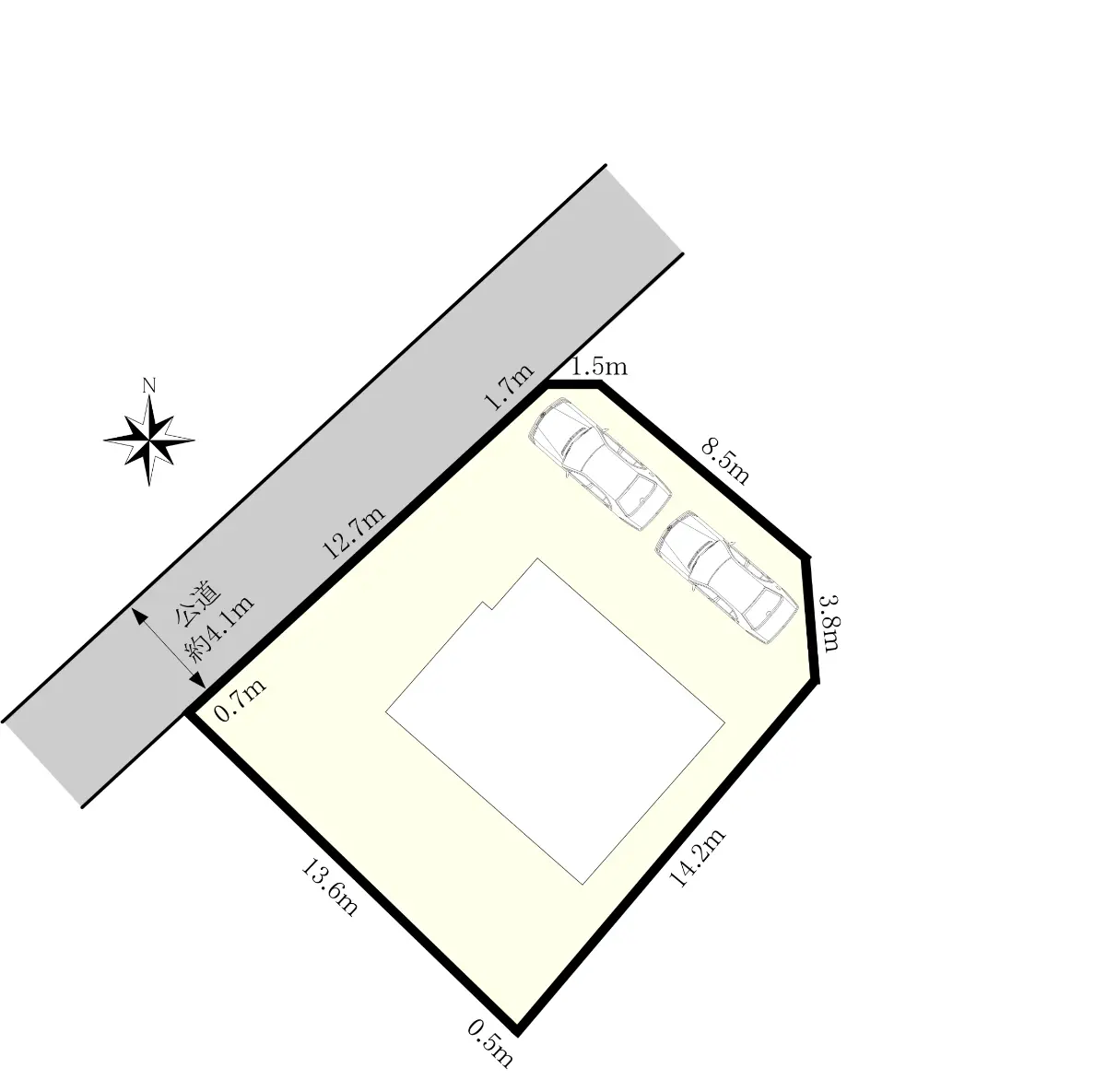 | 接道状況 | 一方道路・北西4.1m(公道)接面12.7m |