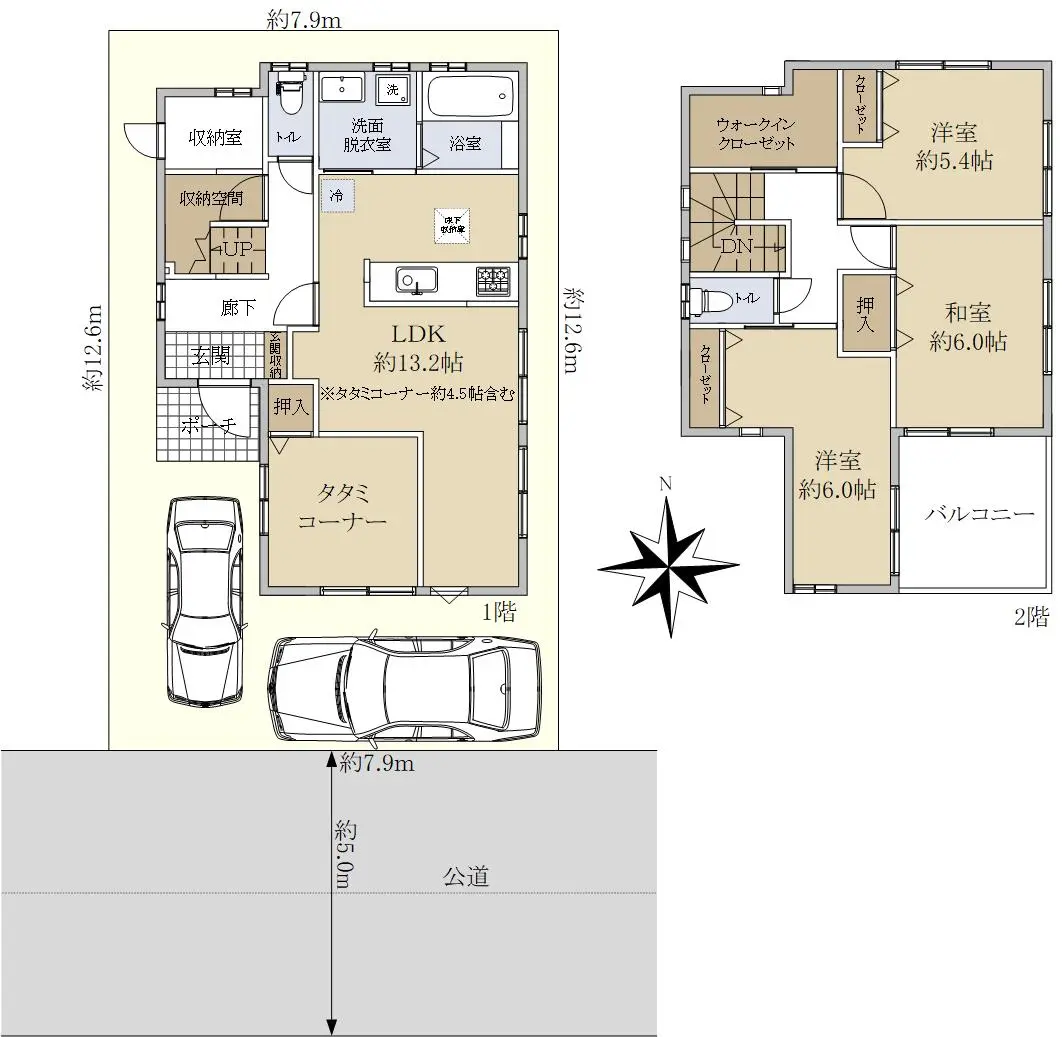 | 接道状況 | 一方道路・南5m(公道)接面7.9m |