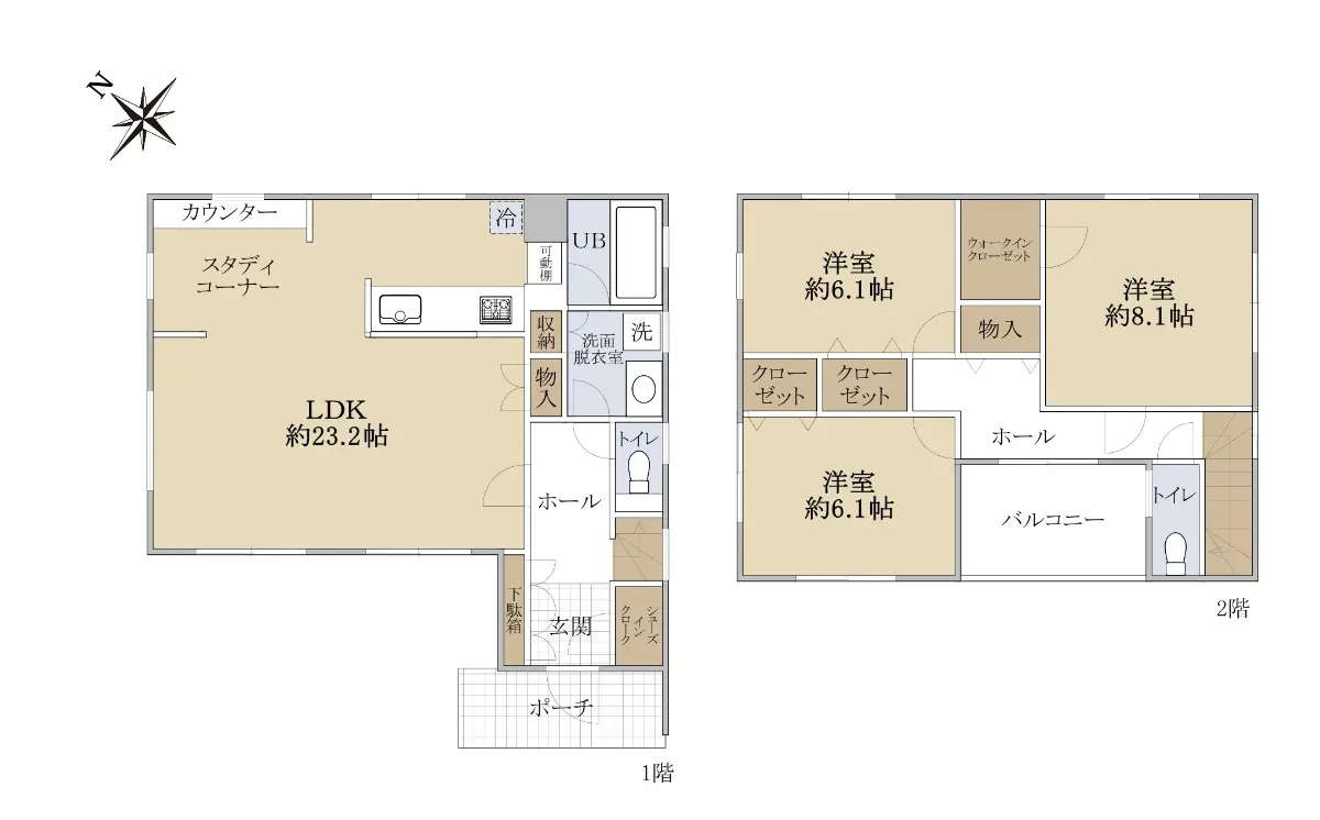 ☆1階LDKは広々約23.2帖!2階の各居室には収納スペースあり