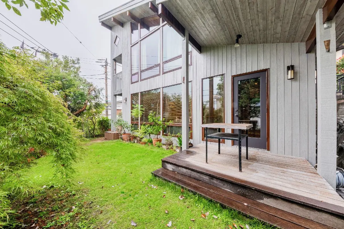 本物件は閑静な住宅地に存し、南・西の角地、建物南側にウッドデッキ、お庭があり、陽当たり・通風良好です。