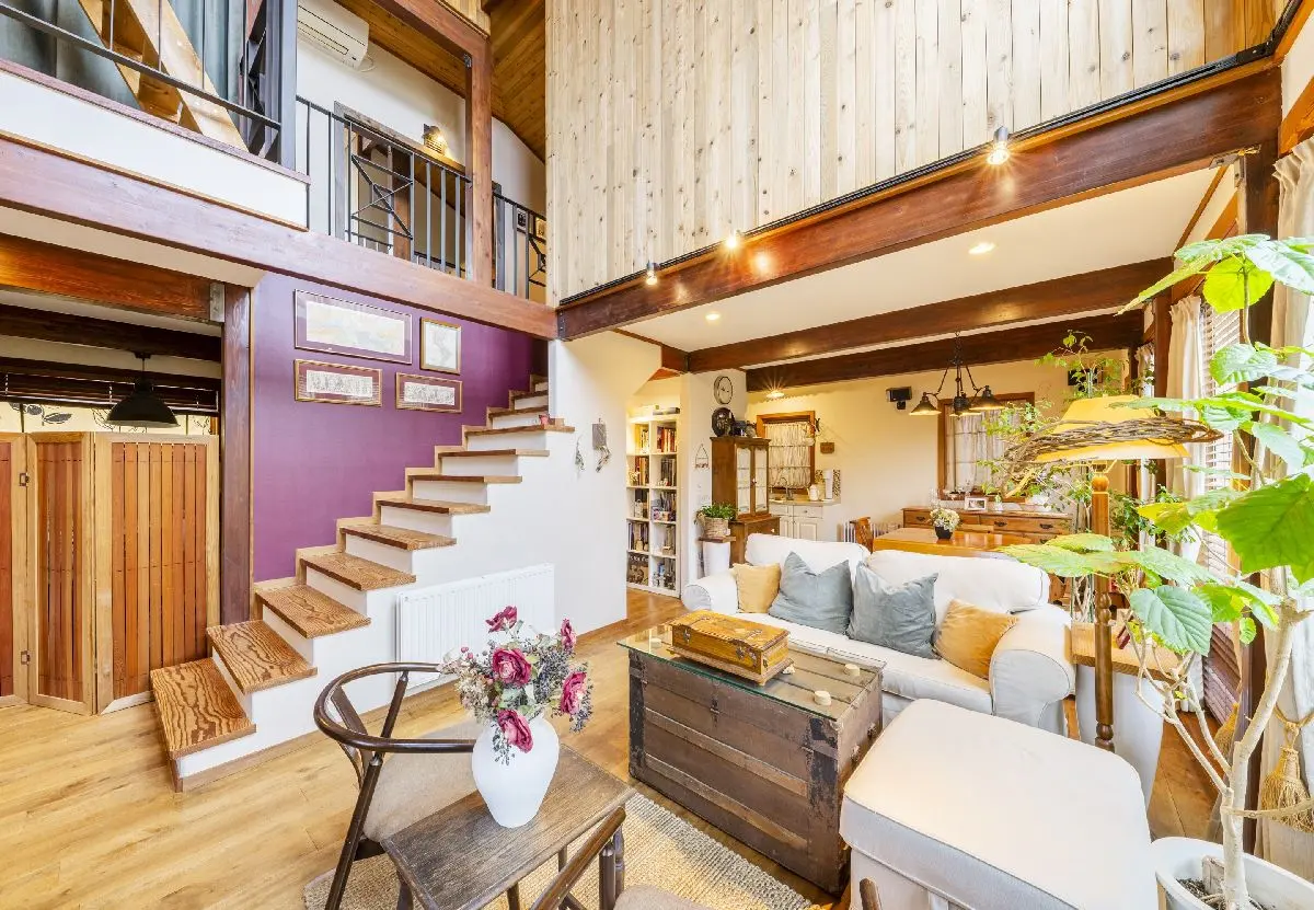 ◆無垢床、塗装壁、木製窓など自然素材で構成された空間