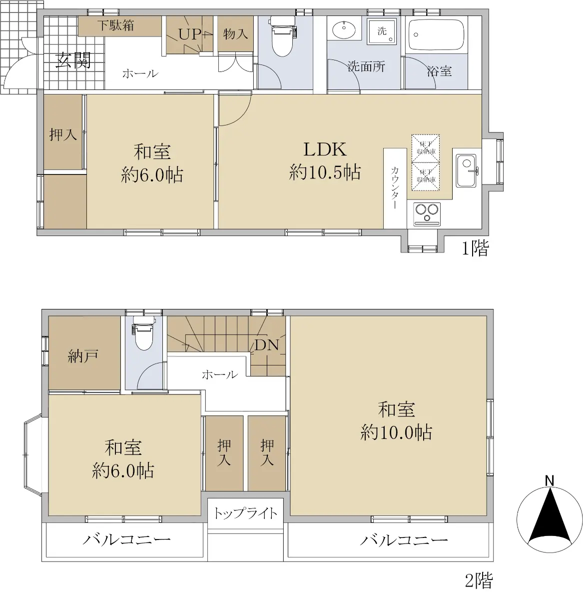 床面積 1階 50.10u 2階 44.71u 延床面積 94.81u