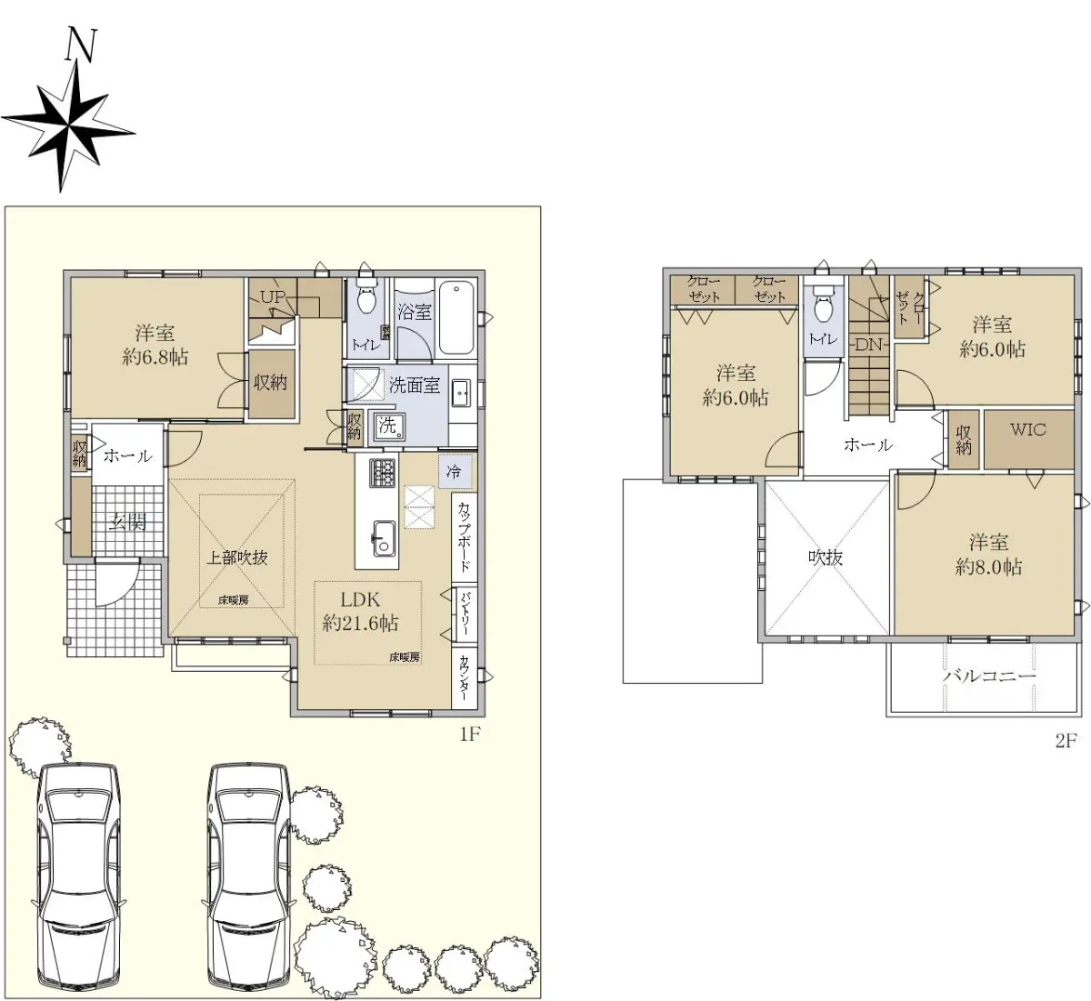 ・建物面積:1階 66.80u、2階 48.69u