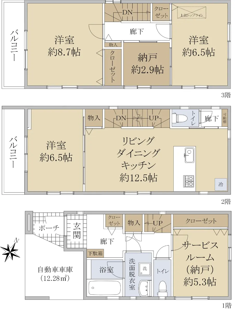 | 間取り | 3SLDK ※Sはサービスルーム(納戸) |
