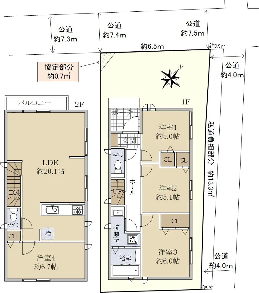 ●土地面積:101.27u(他に私道負担部分:13.28uあり)