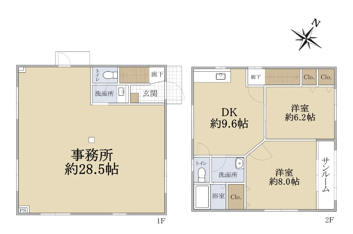 ◇間取/1階事務所+2階2DK