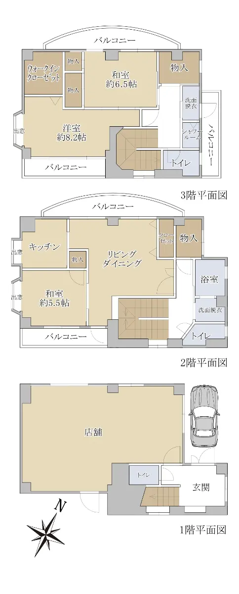□ 延床面積:1F 49.26u/2F 54.96u/3F 50.66u