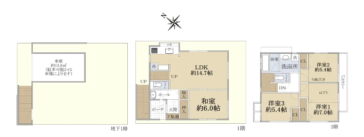 ※建物面積には車庫13.65uを含みます。