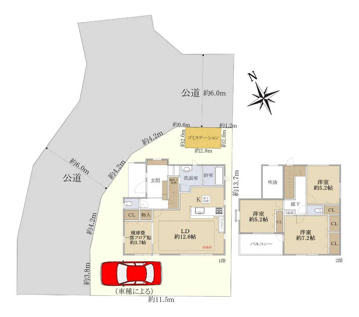 ・北西公道約6.0m