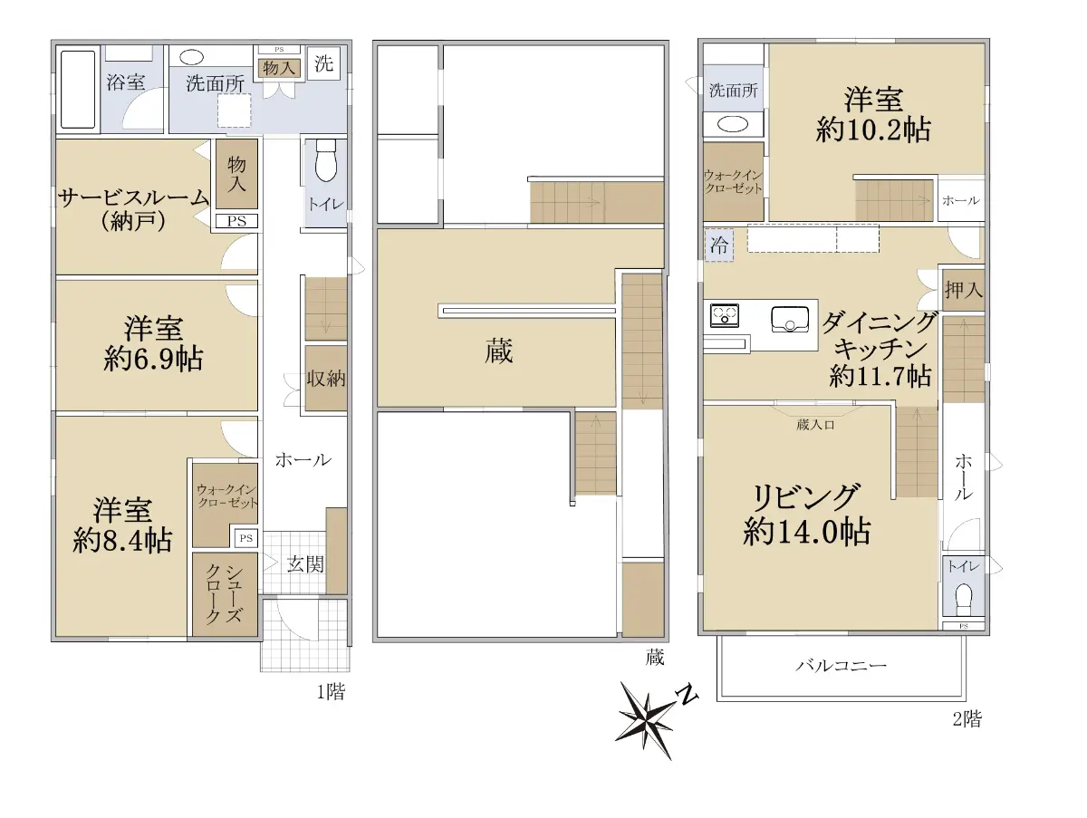 | 間取り | 3SLDK ※Sはサービスルーム(納戸) |