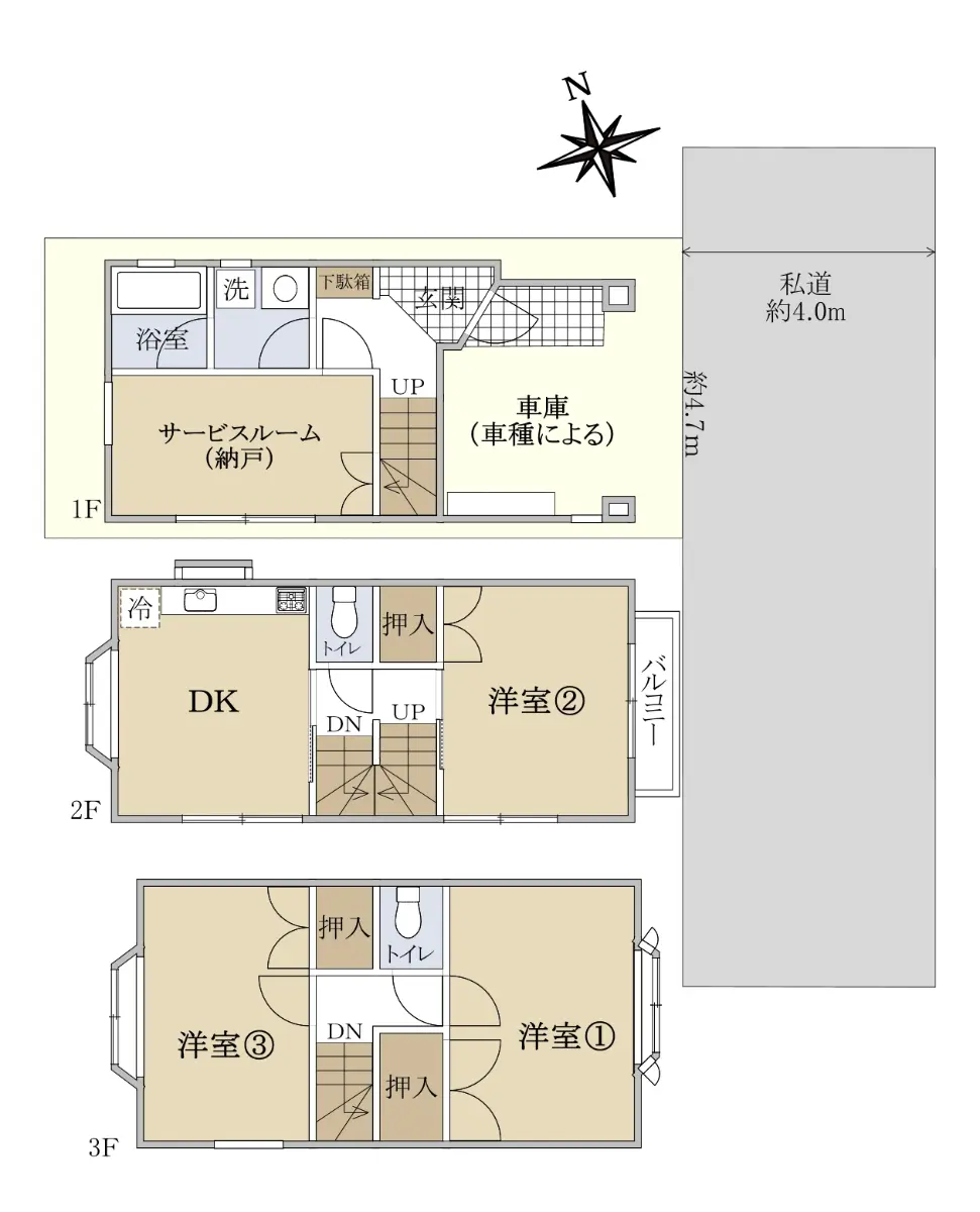 | 間取り | 3SDK ※Sはサービスルーム(納戸) |