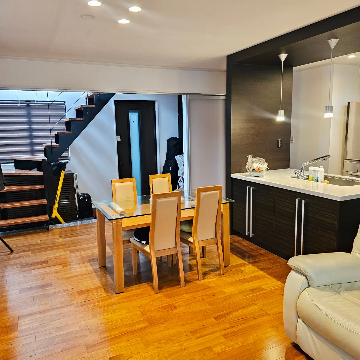 吹き抜けの階段が開放感を演出しております。