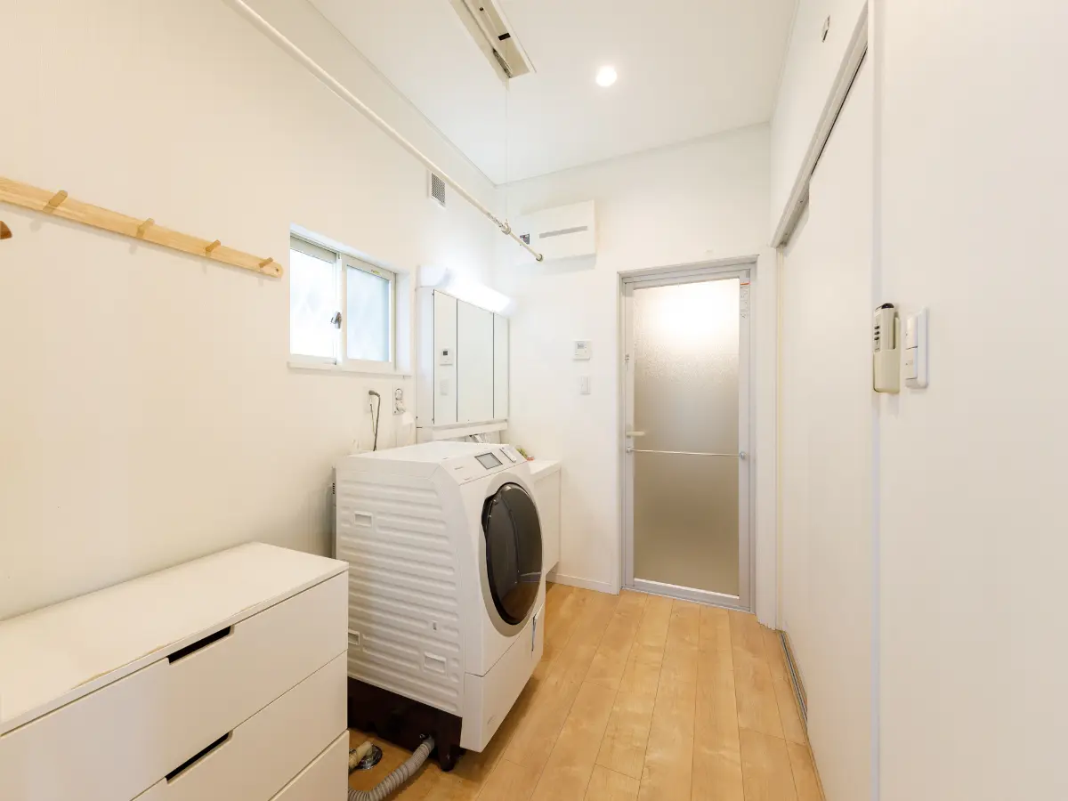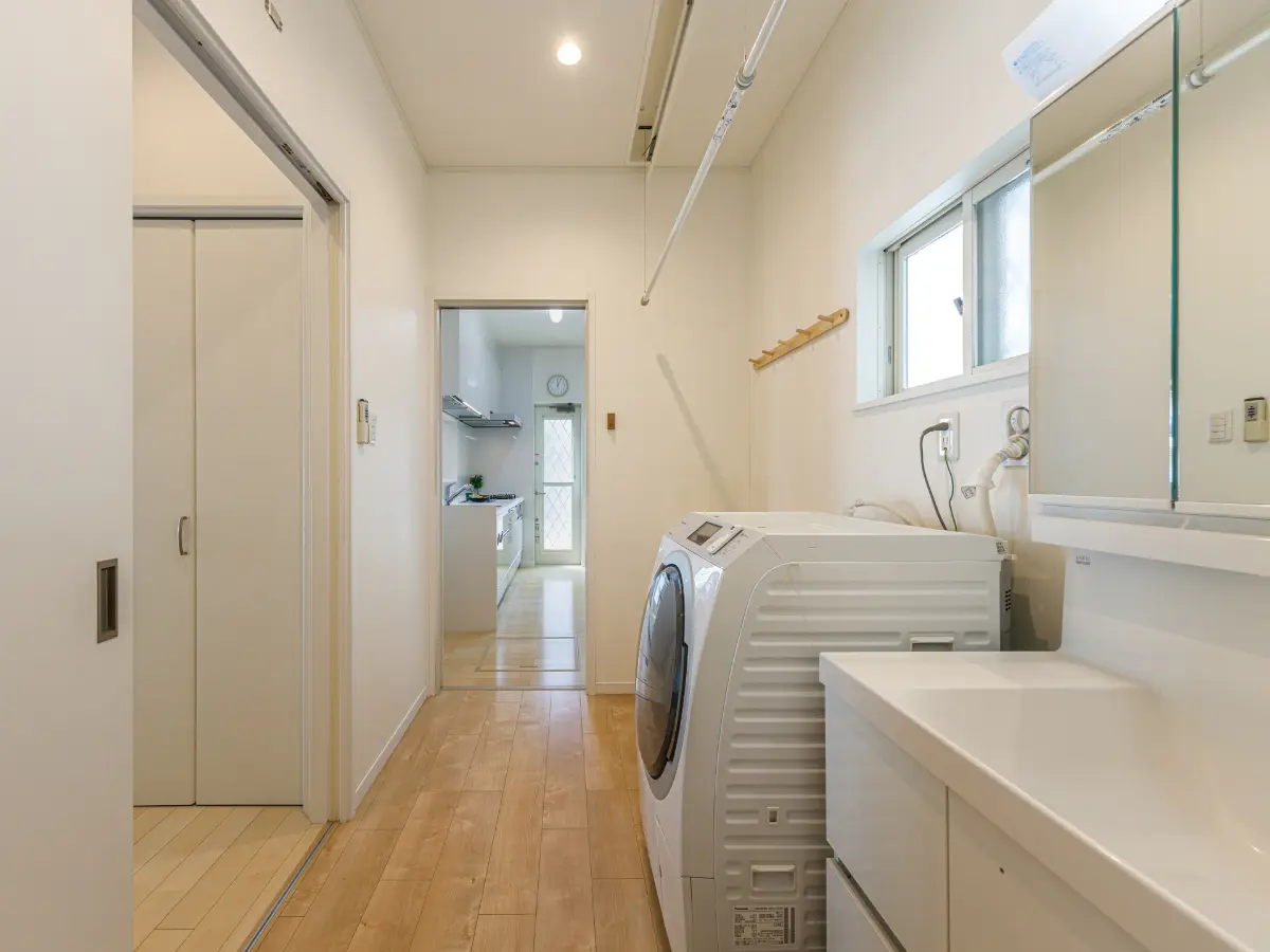●洗面室が広く室内干しスペースを確保できます。