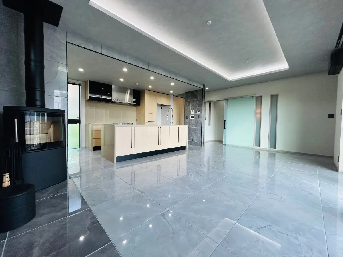 また、薪ストーブ付の約26.8帖のLDKは2階にあり、眺望・陽当り良好です。