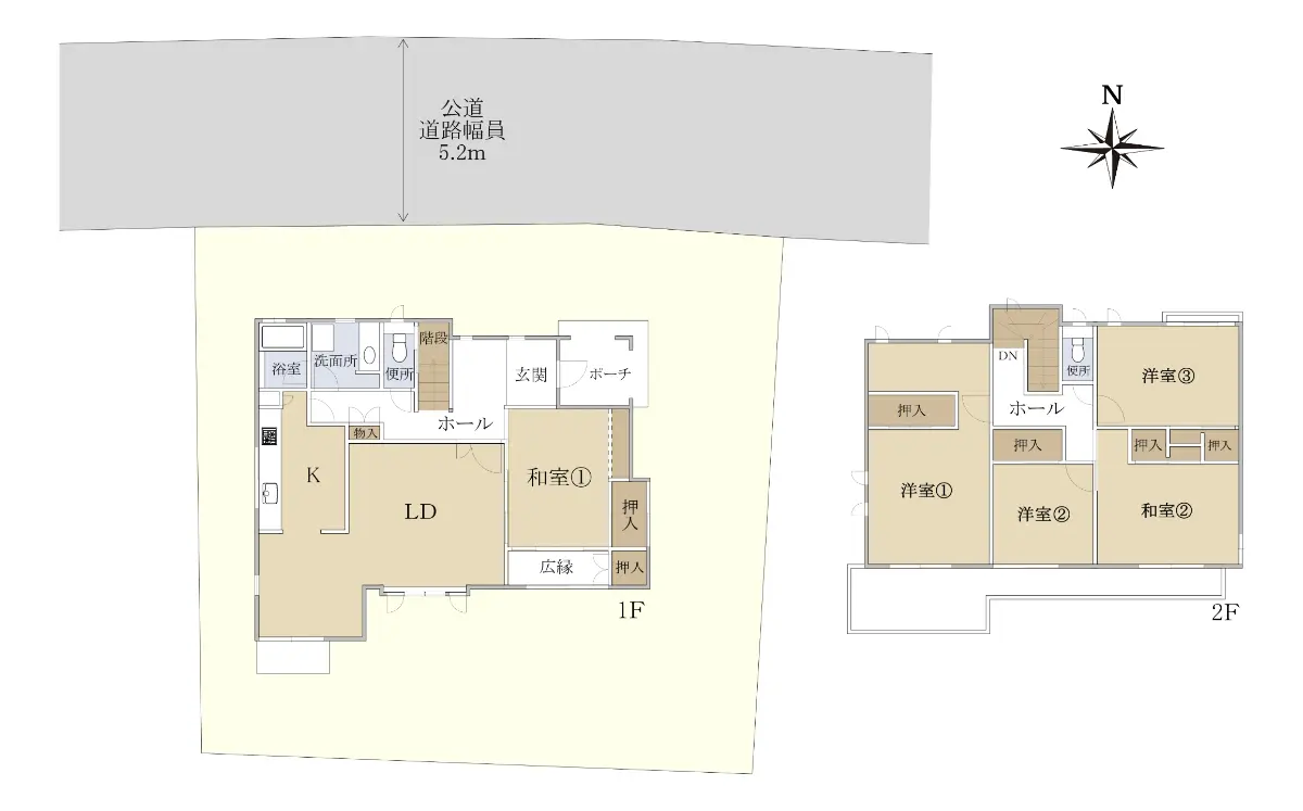 | 接道状況 | 一方道路・北5.2m(公道)接面16.4m |