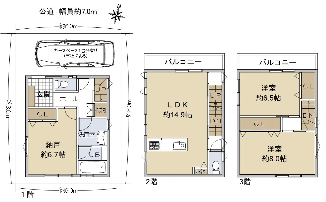 カースペース1台分有り(車種による)