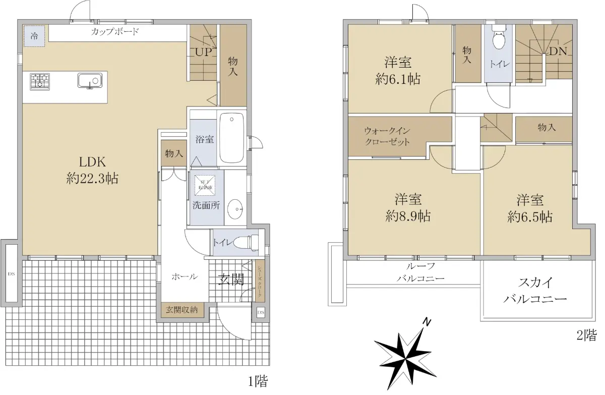 建物面積112.74m2(約34.10坪)・間取り3LDK・2022年07月築