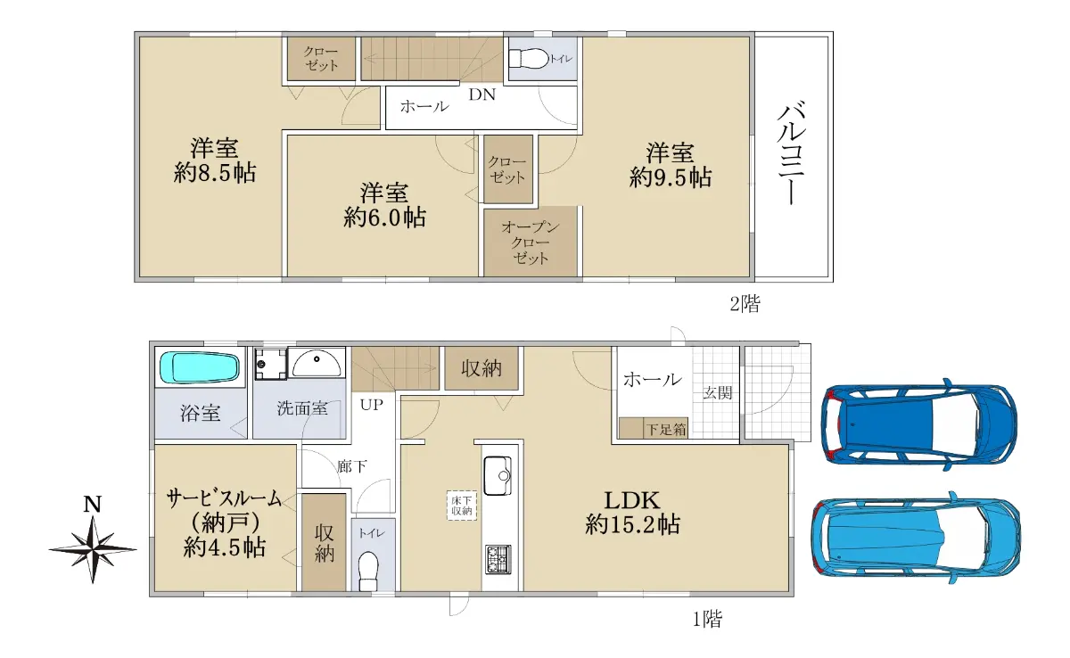 ・2階建、3LDK+サービスルーム(納戸)