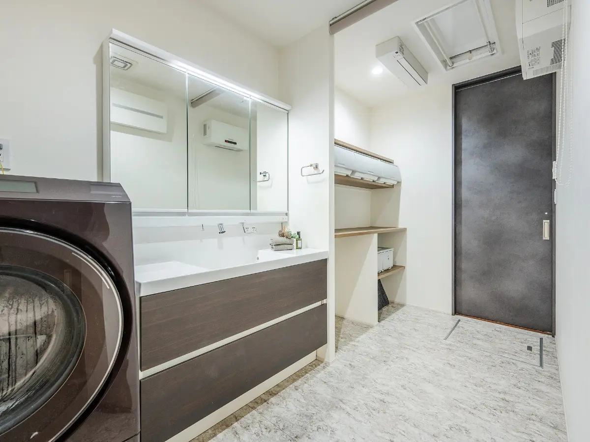 ☆洗面脱衣室+ランドリースペースの為、ゆったりとした空間かつプライバシーも確保!