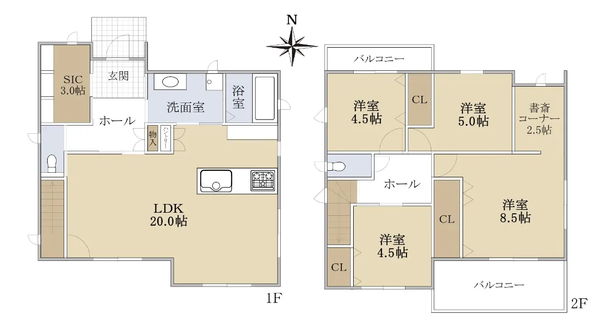 収納も各所に設けられており、特に3.0帖のシューズクローゼットはお勧めポイントの一つです。