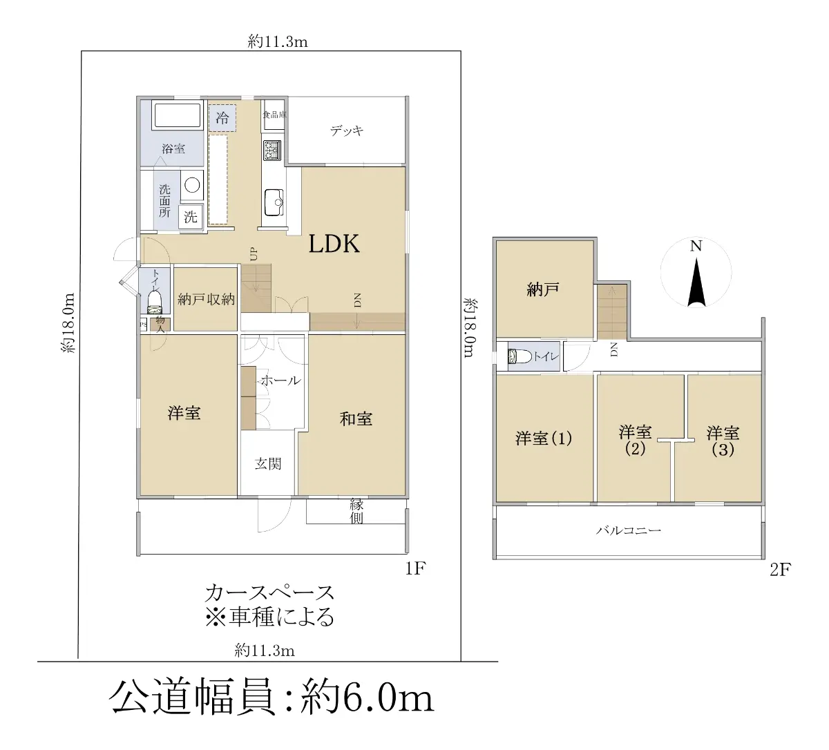 | 接道状況 | 一方道路・南6m(公道)接面11.3m |