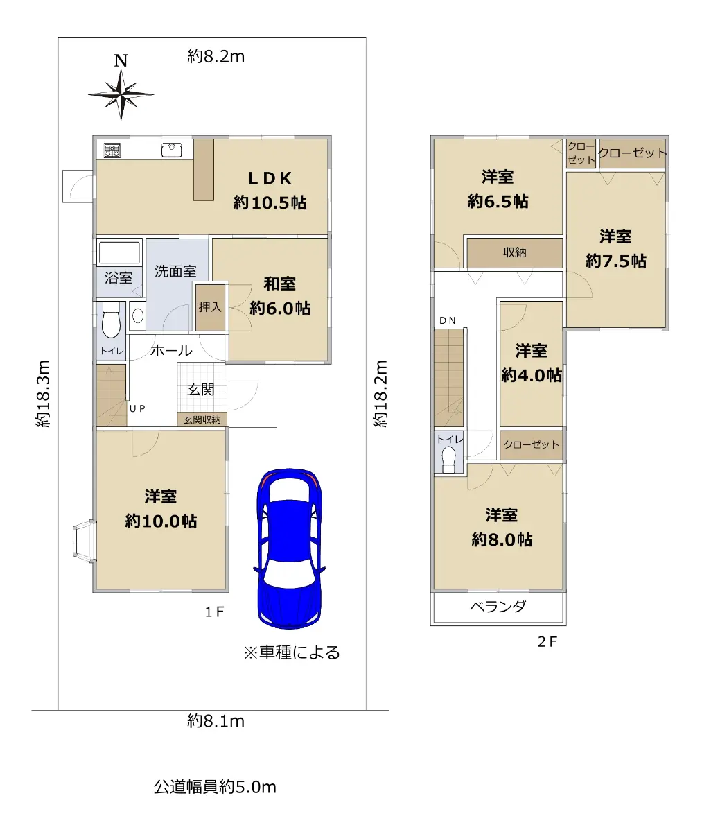 | 接道状況 | 一方道路・南5m(公道)接面8.1m |