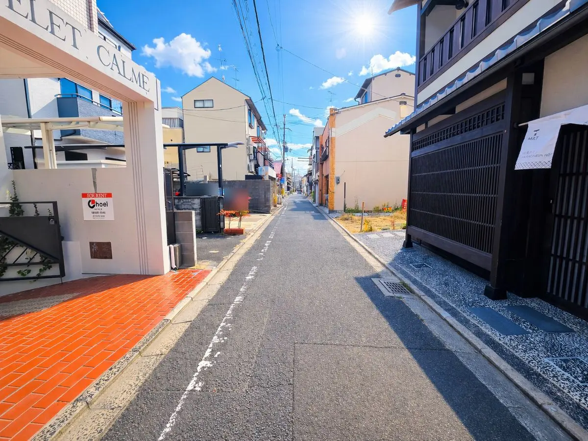 周辺エリアは、世界遺産・二条城(約500m)のほど近く、かつては公家や武家屋敷が立ち並んだ歴史ある地域です。平安京の面影を残す中京区黒門通。二条城の東南に位置し、かつて二条城の南端に位置していた「黒門」へと続く歴史ある通り。古くから京都の中心地として栄えたこのエリアは、落ち着いた住宅街でありながら、一歩路地を出れば洗練された街並みとなっております。